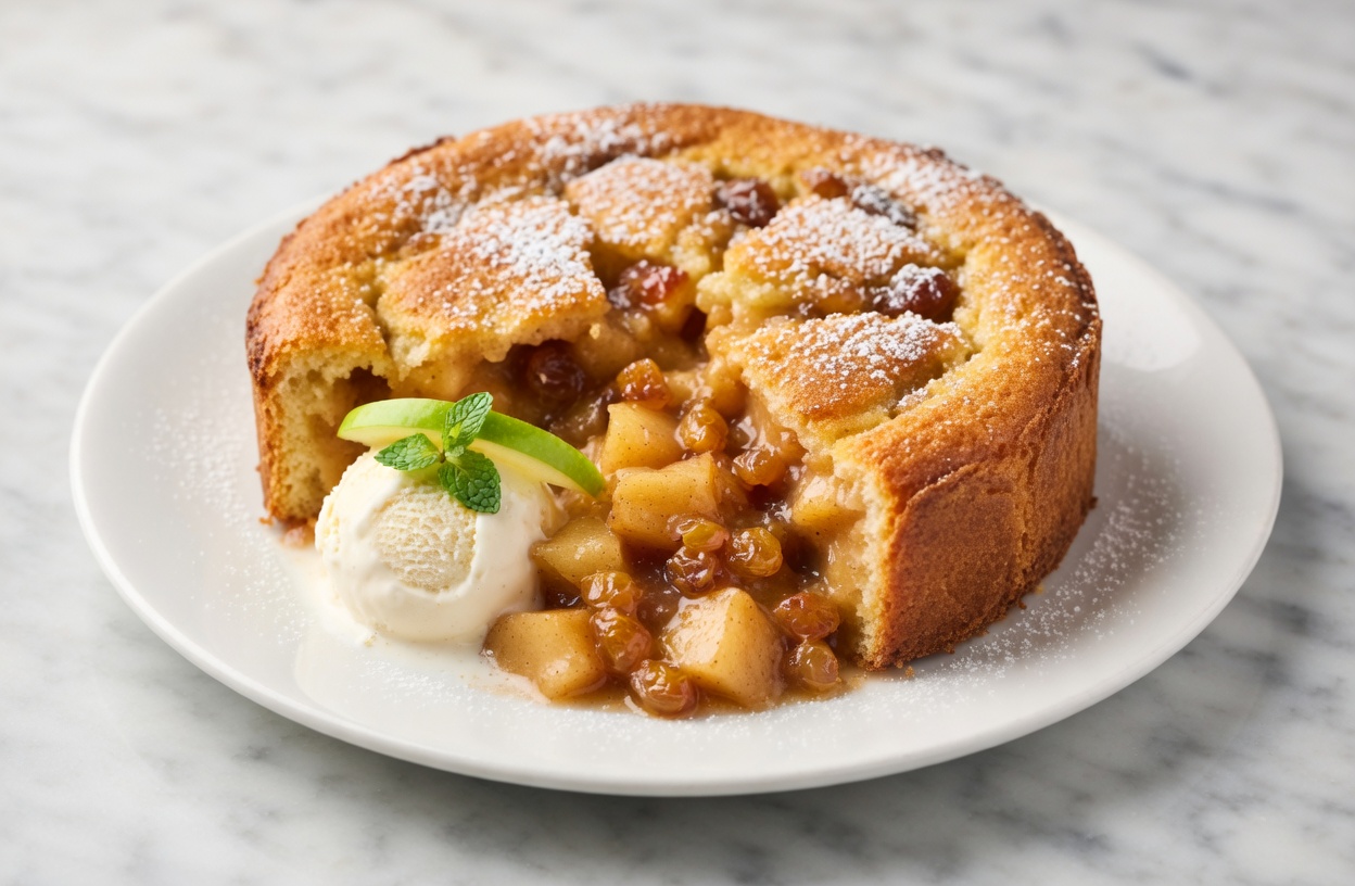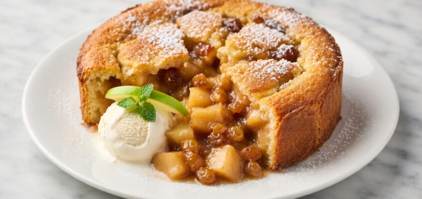 Enjoy this classic British dessert — a beautiful combination of crisp buttery bread and tender spiced apple filling!