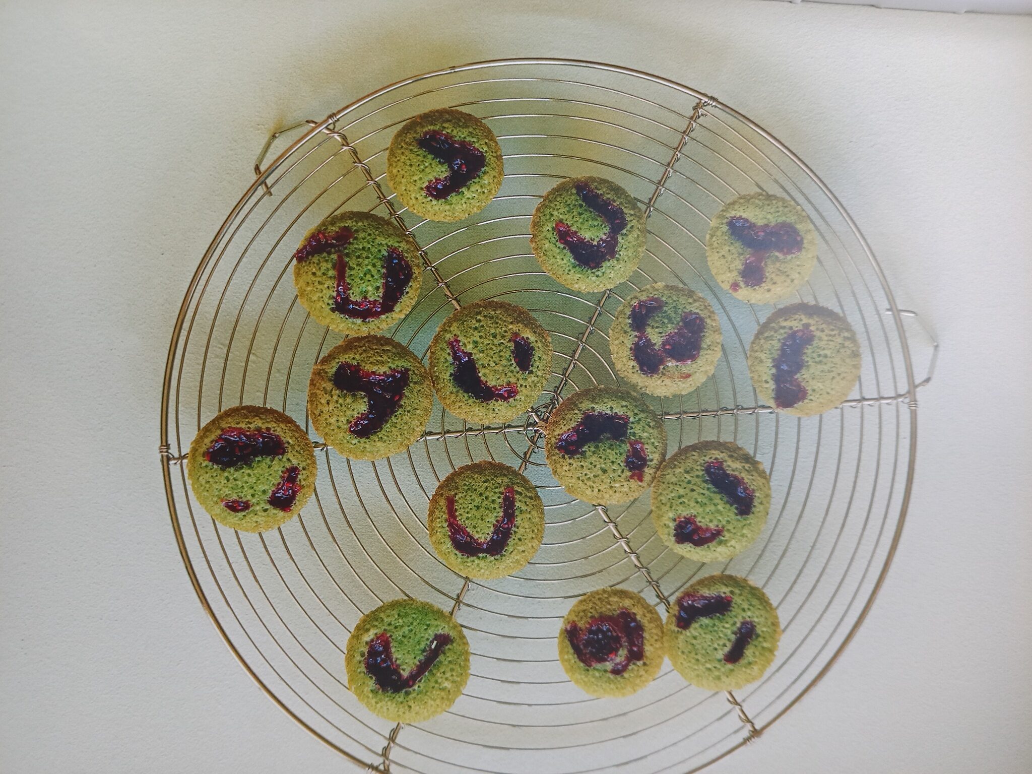 Pipe a small amount of batter into each cavity of the silicone mold. Add a little raspberry coulis / jam in the center of each financier. Cover with more batter to enclose the raspberry filling. Smooth the tops if needed.