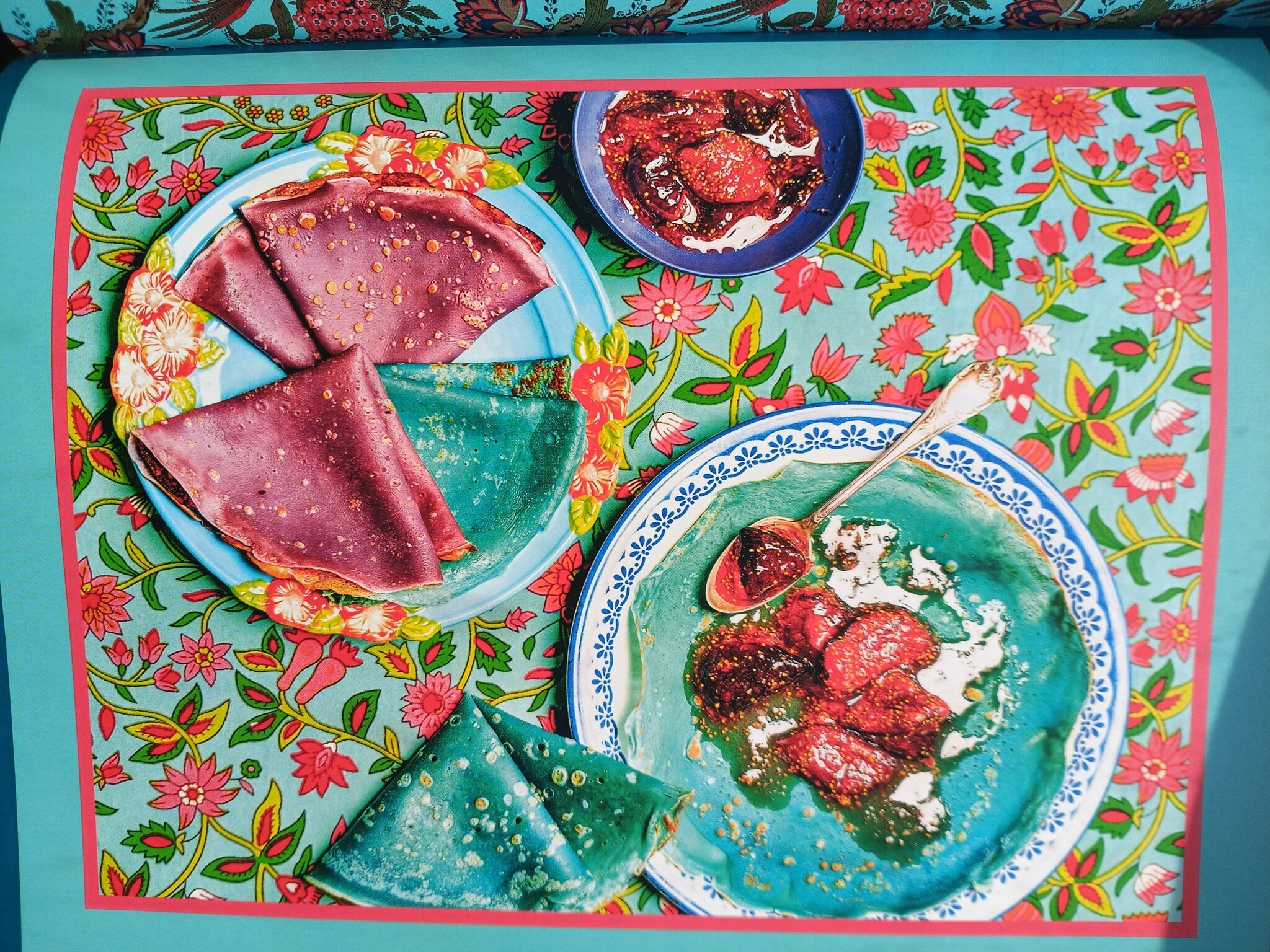 – **Accompaniment:** Serve the colorful crepes (purple and blue) folded or rolled with a generous spoonful of fig jam. Add a little whipped cream, fresh figs, or a drizzle of honey if desired.
