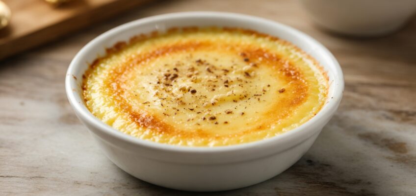 This classic English baked custard is rich, silky, and comforting — perfect on its own, with fruit, or as a filling for tarts.