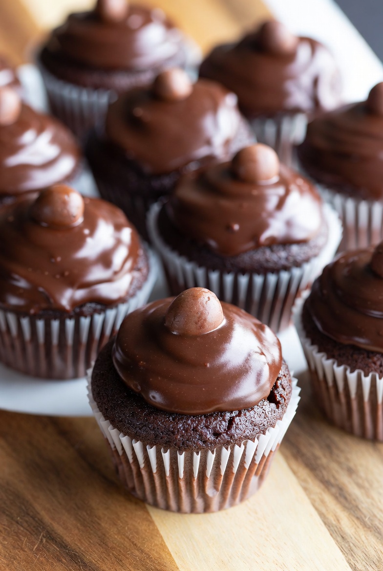 - Spread or pipe the chocolate-espresso icing generously over the flat surface of each cupcake.