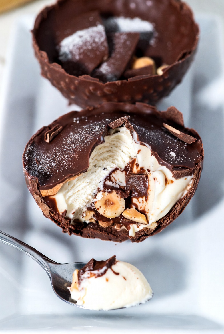 **9.** Meanwhile, melt the reserved chocolate (from the original chocolate ice cream or extra chocolate) in the microwave.