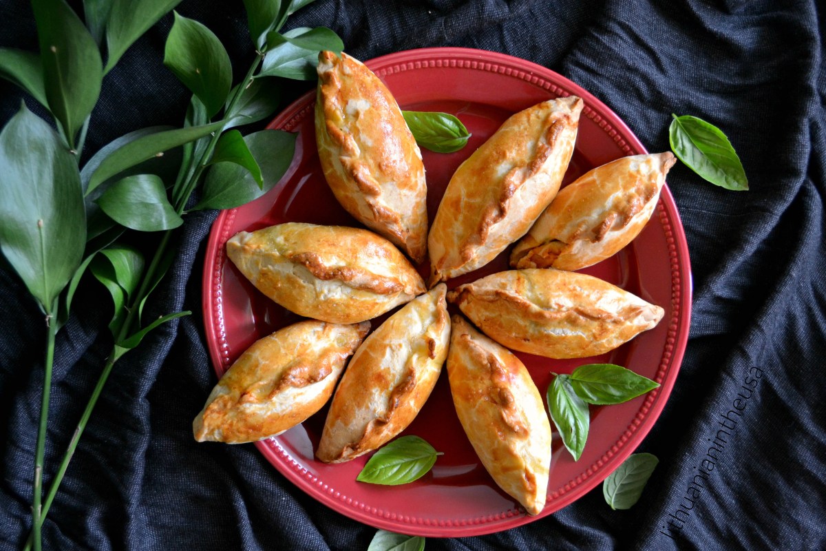 – Roll out thinly (dust with flour if sticky). For best flakiness, roll into a log, slice into pieces, and roll each individually into circles.
