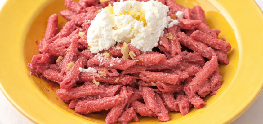 2. Finely grate the Parmesan, then add the lemon zest. Squeeze the lemon. Pick the basil leaves, put them in a blender with the beetroots, ricotta, half the lemon juice and 1 ladle of pasta cooking water (or as much as needed to get a smooth sauce), then blend until smooth.