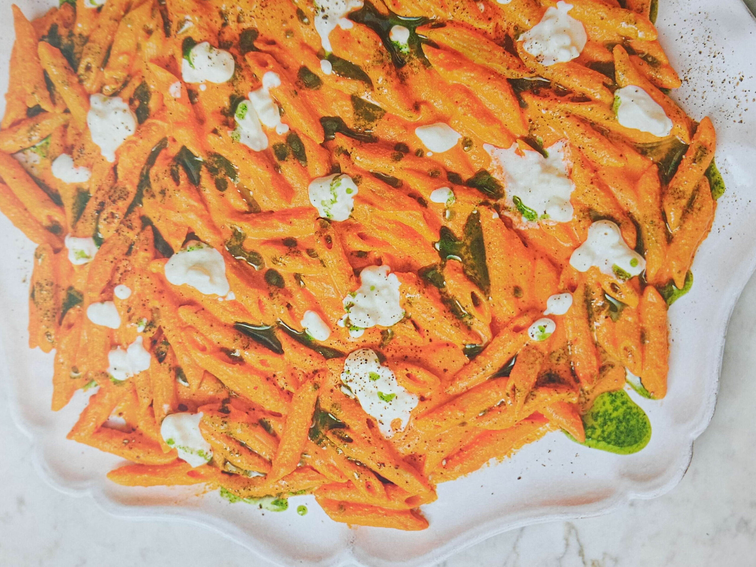 5. Serve the pasta in bowls or plates, top with cottage cheese, drizzle with a little olive oil, and garnish with parsley.