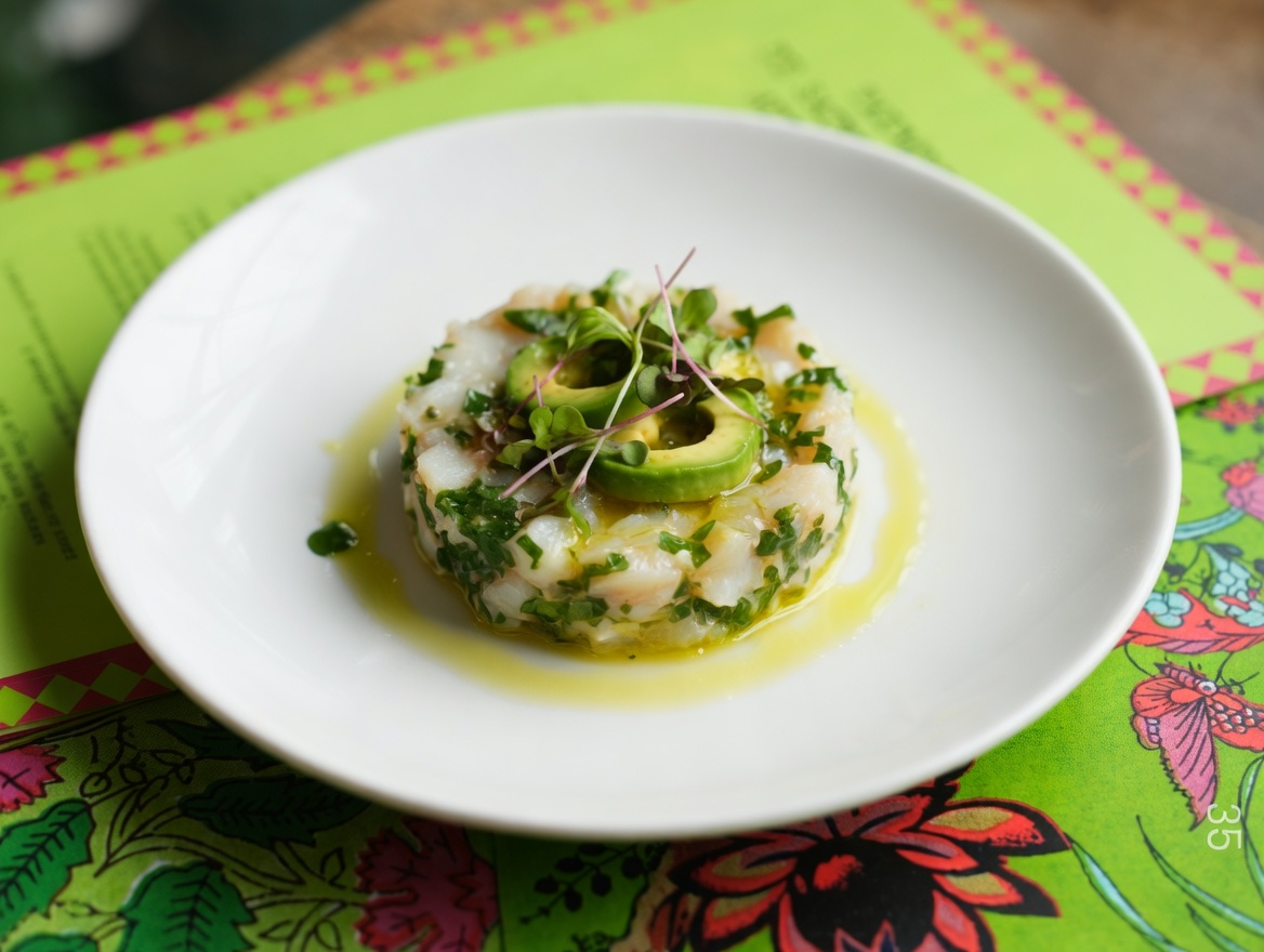 - In a bowl, combine the diced scallops with the chopped shallots, parsley, grated ginger, lime zest, and avocado cubes.